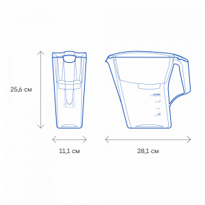 Объем воронки, л1,2Применениедля холодной водыОбъем кувшина, л2,8Помещается в дверцу холодильникадаКрышкаглухаяСчётчик замены модулябез счётчикаРесурс модуля, л350